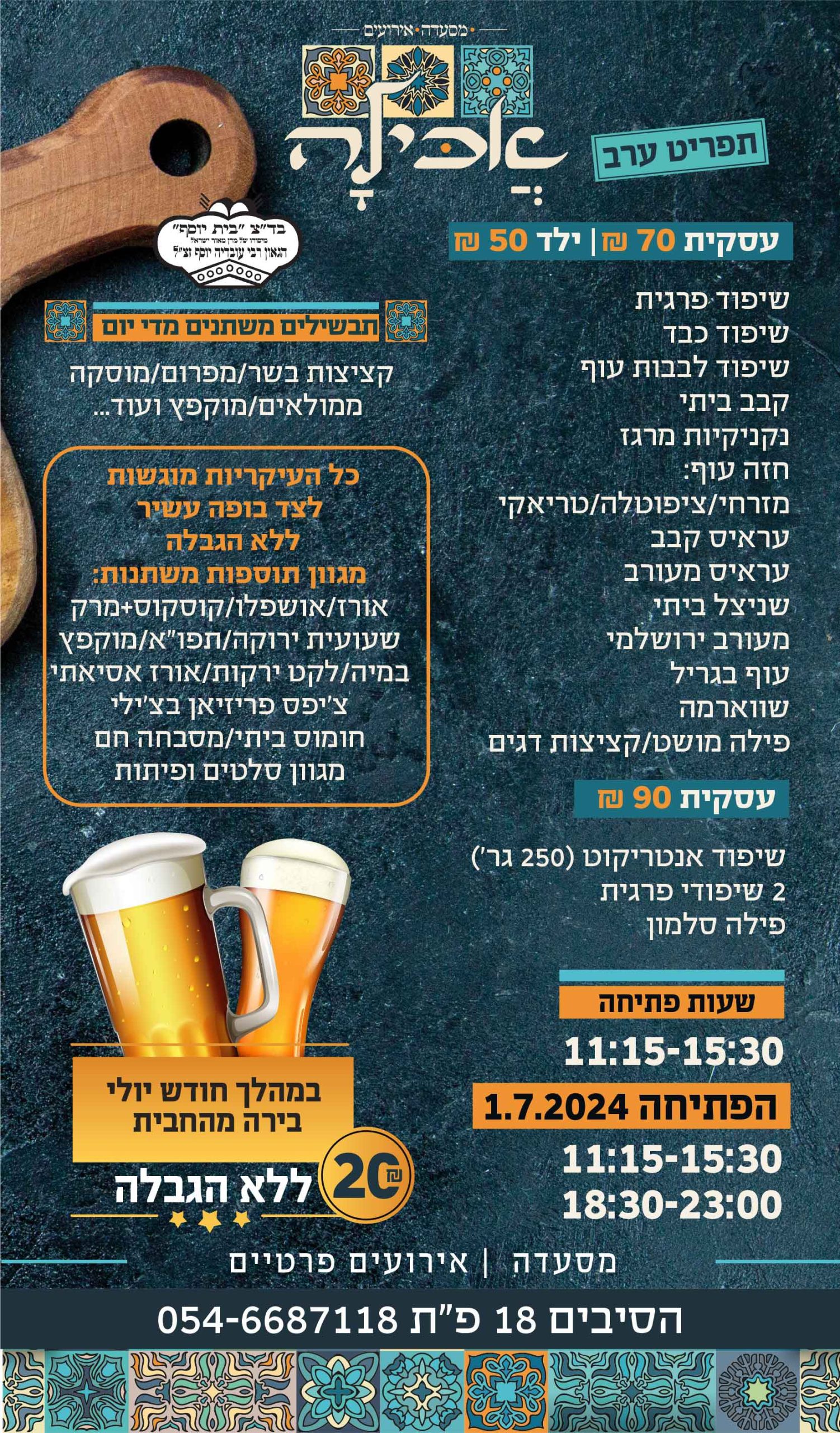 ניתן להתקשר אלינו ונשמח להגיד לכם מה יש בתפריט היום